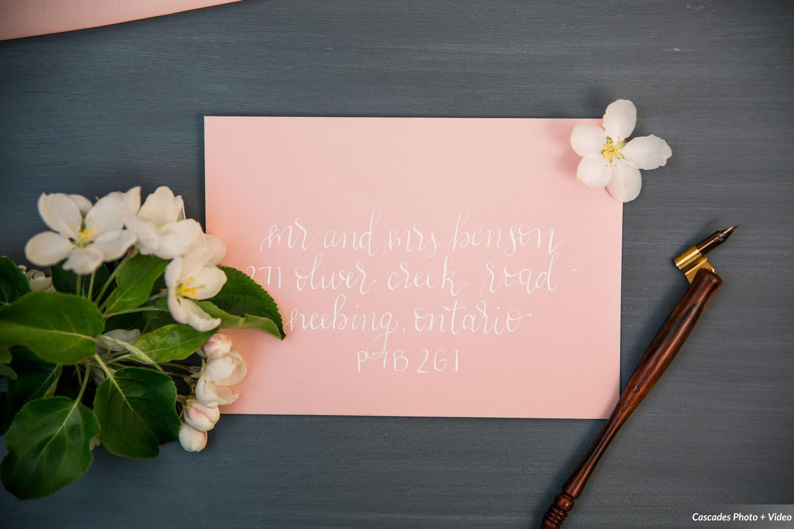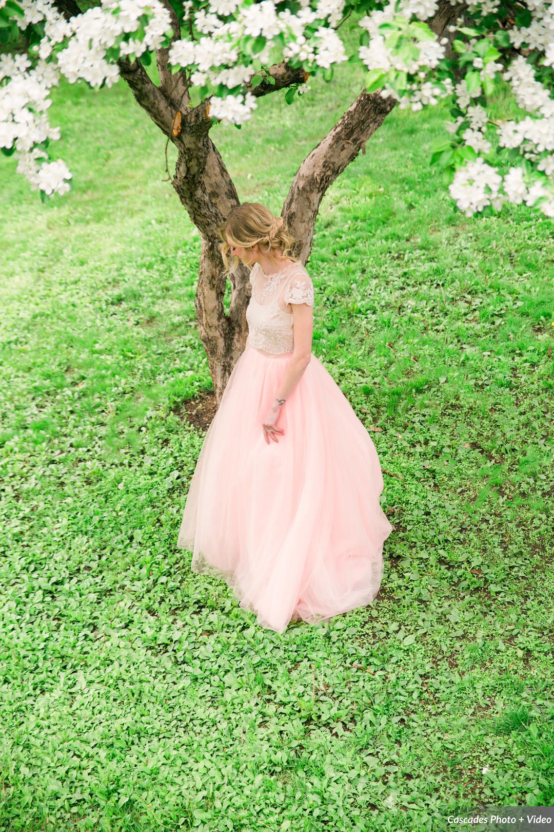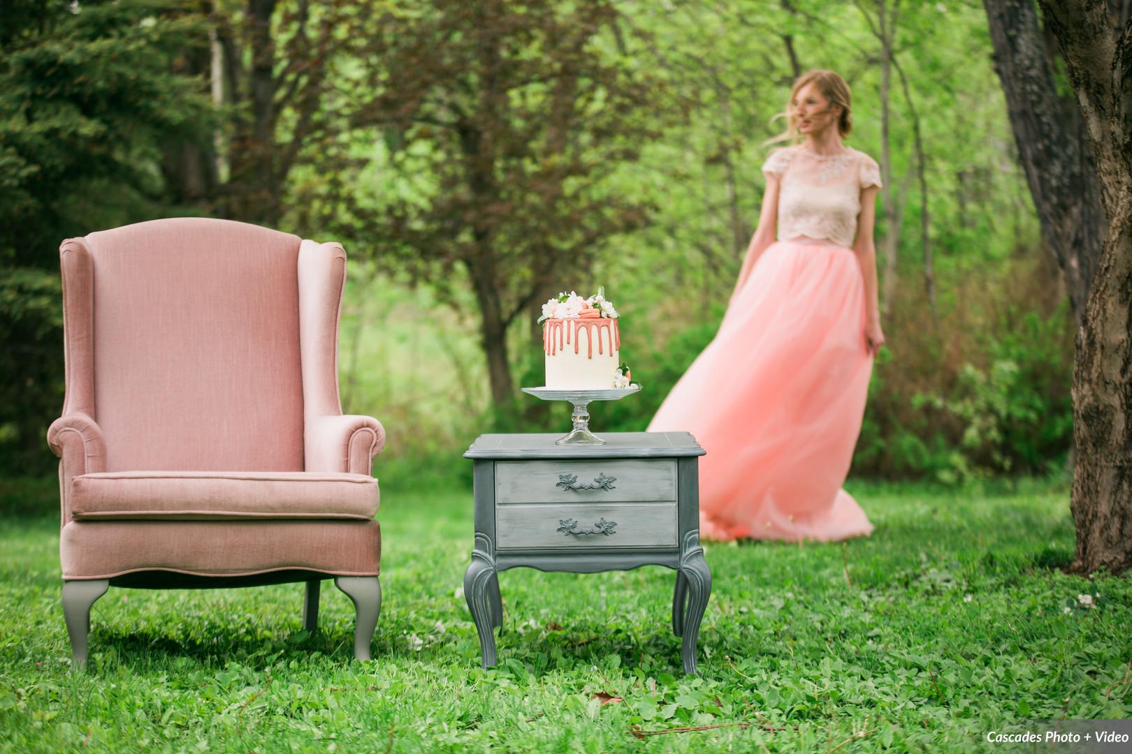 When Megan approached me with her idea to design a styled shoot around the apple blossoms that appear for a brief time each year, I was in! We quickly collaborated with local vendors to create a feminine, floral, and magical design. From the smallest detail (a gorgeous pearl engagement ring), to the most delicious detail (the rose gold icing drip) – I loved every moment of this day. The final photos show a light and airy mood, with our model dancing in the field. In reality, this styled shoot was almost cancelled! On what must have been the windiest day in Thunder Bay’s history, all the apple blossoms at our original shoot location had fallen off the trees, and to top things off – the power was out. We immediately chose a new location – Megan’s backyard, which had enough cover from the wind that her own apple blossoms remained intact. The wind continued to cause problems behind the scenes – knocking over floral centrepieces and glassware, pouring water on our wallpaper table runner, and blowing print materials all over the backyard. As a team, we all held the décor in place until Megan was ready to snap her photo – and ran out of the shot. It was a challenging shoot, but it was truly a pleasure to work with such amazing, creative and talented women – most of whom are owners of their own small businesses. Collaboration > Competition! I had so much fun during this shoot, and I love the final images that Megan captured – I know you will too. Enjoy. xo