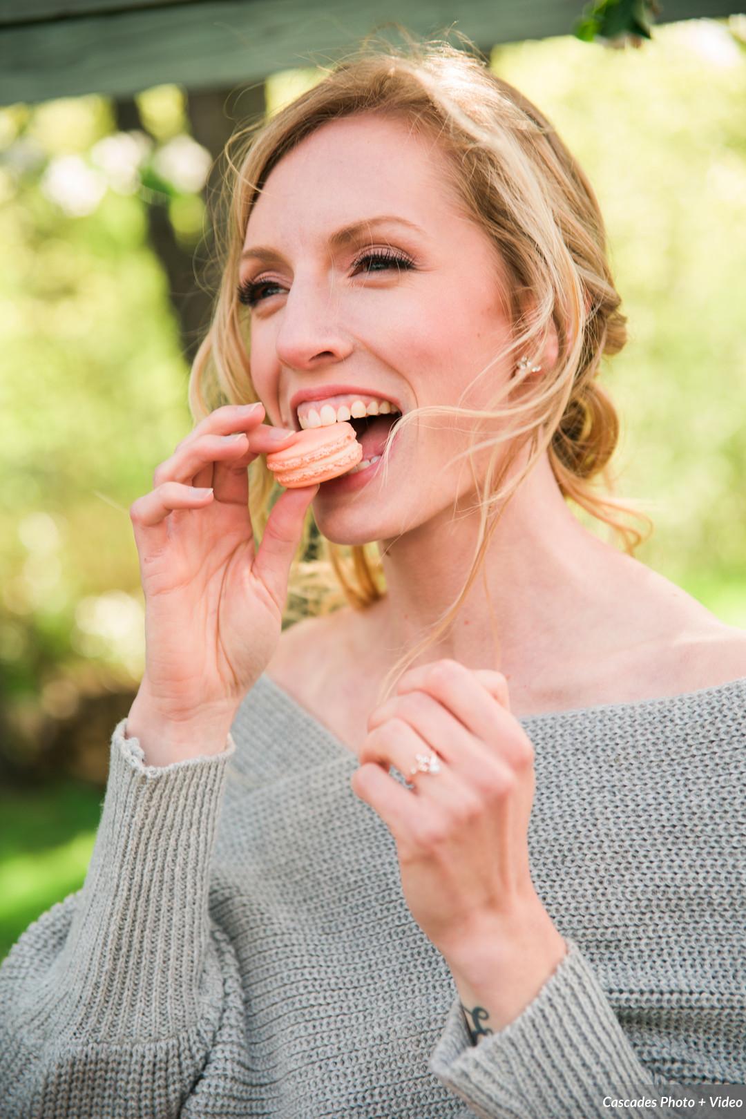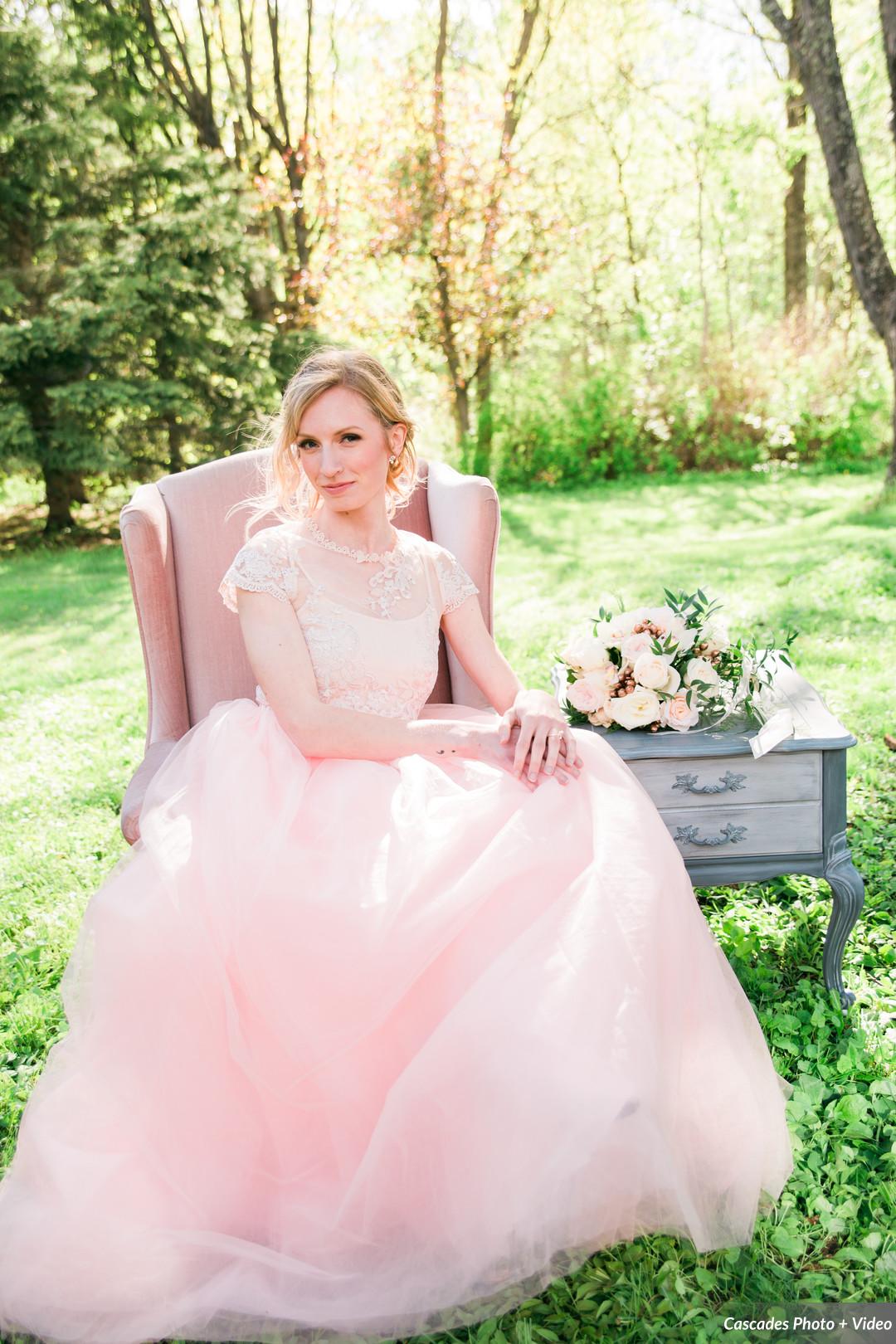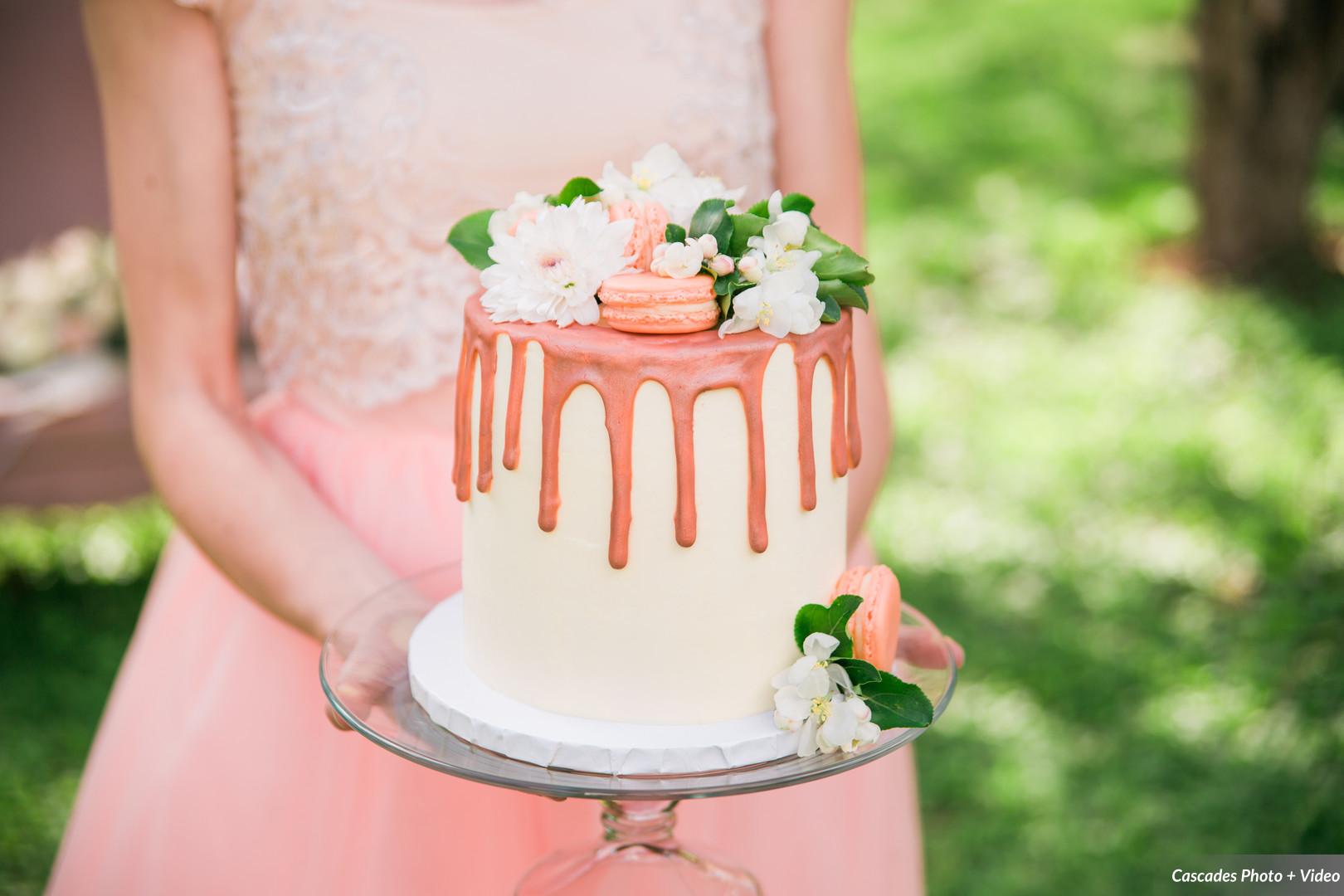 When Megan approached me with her idea to design a styled shoot around the apple blossoms that appear for a brief time each year, I was in! We quickly collaborated with local vendors to create a feminine, floral, and magical design. From the smallest detail (a gorgeous pearl engagement ring), to the most delicious detail (the rose gold icing drip) – I loved every moment of this day. The final photos show a light and airy mood, with our model dancing in the field. In reality, this styled shoot was almost cancelled! On what must have been the windiest day in Thunder Bay’s history, all the apple blossoms at our original shoot location had fallen off the trees, and to top things off – the power was out. We immediately chose a new location – Megan’s backyard, which had enough cover from the wind that her own apple blossoms remained intact. The wind continued to cause problems behind the scenes – knocking over floral centrepieces and glassware, pouring water on our wallpaper table runner, and blowing print materials all over the backyard. As a team, we all held the décor in place until Megan was ready to snap her photo – and ran out of the shot. It was a challenging shoot, but it was truly a pleasure to work with such amazing, creative and talented women – most of whom are owners of their own small businesses. Collaboration > Competition! I had so much fun during this shoot, and I love the final images that Megan captured – I know you will too. Enjoy. xo